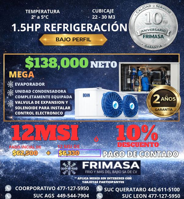 Frio y Mas de Bajío es una empresa líder con crecimiento rentable y sólida posición competitiva de México con la mejor mezcla de productos y servicios, precio y calidad en atención en el ramo del Aire Acondicionado, Refrigeración y Ventilación